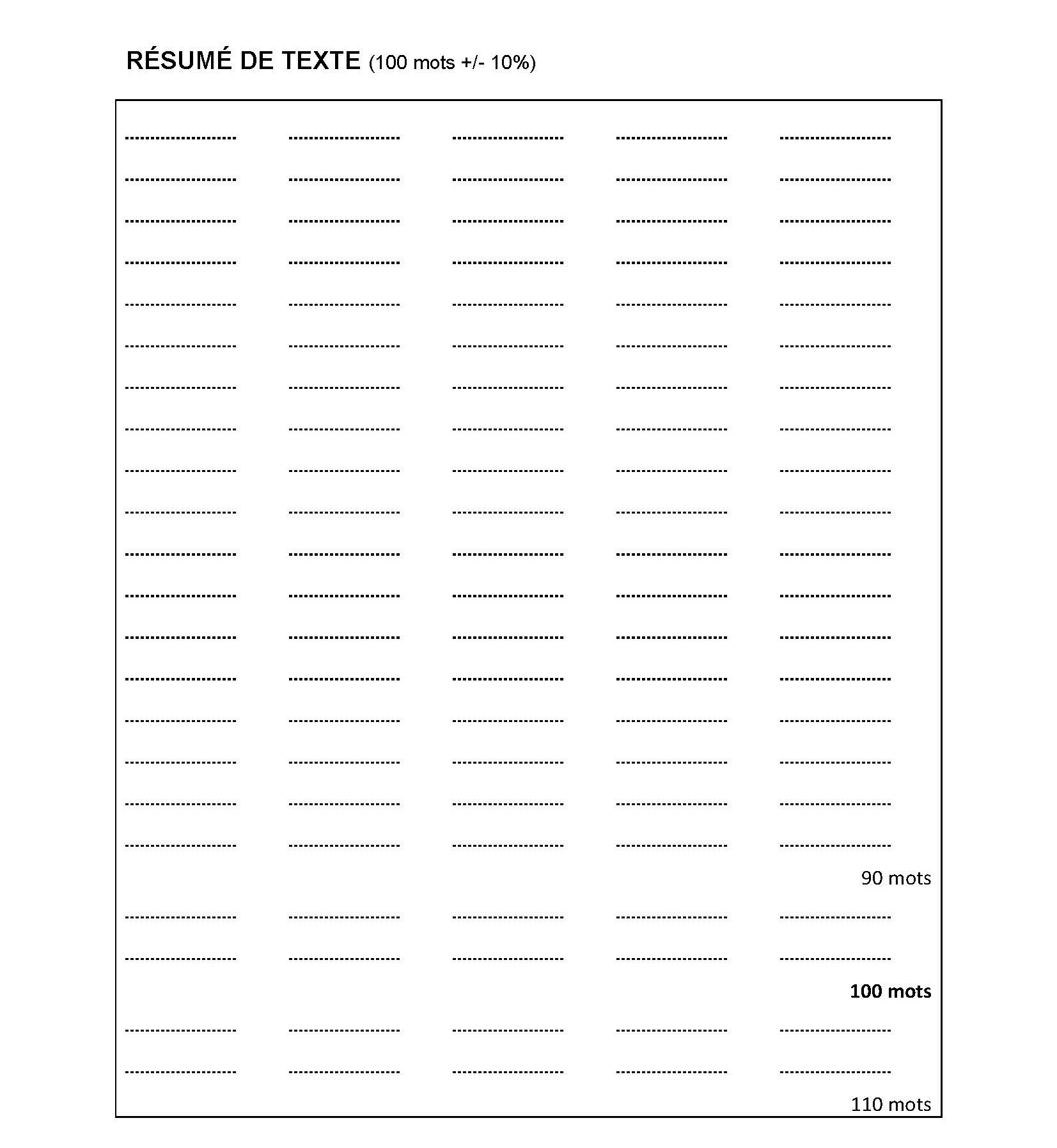(feuille de réponse normalisée pour un résumé)